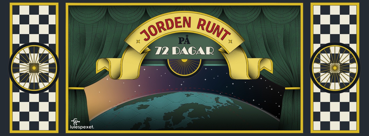 "Jorden runt på 72 dagar” är såklart en referens till boken Jorden runt på 80 dagar skriven av Jules Verne på sent 1800-tal. Men det är inte den fiktiva historien vi valt att basera årets spex på. Nej, det är nämligen så att det under 1800-talet fanns tre fantastiska journalister som läste Jules Vernes fantastiska bok och som själva ville åka jorden runt och bli kända jorden runt. Och såklart så gjorde de detta (eller i alla fall en av dem) på bara 72 dagar!