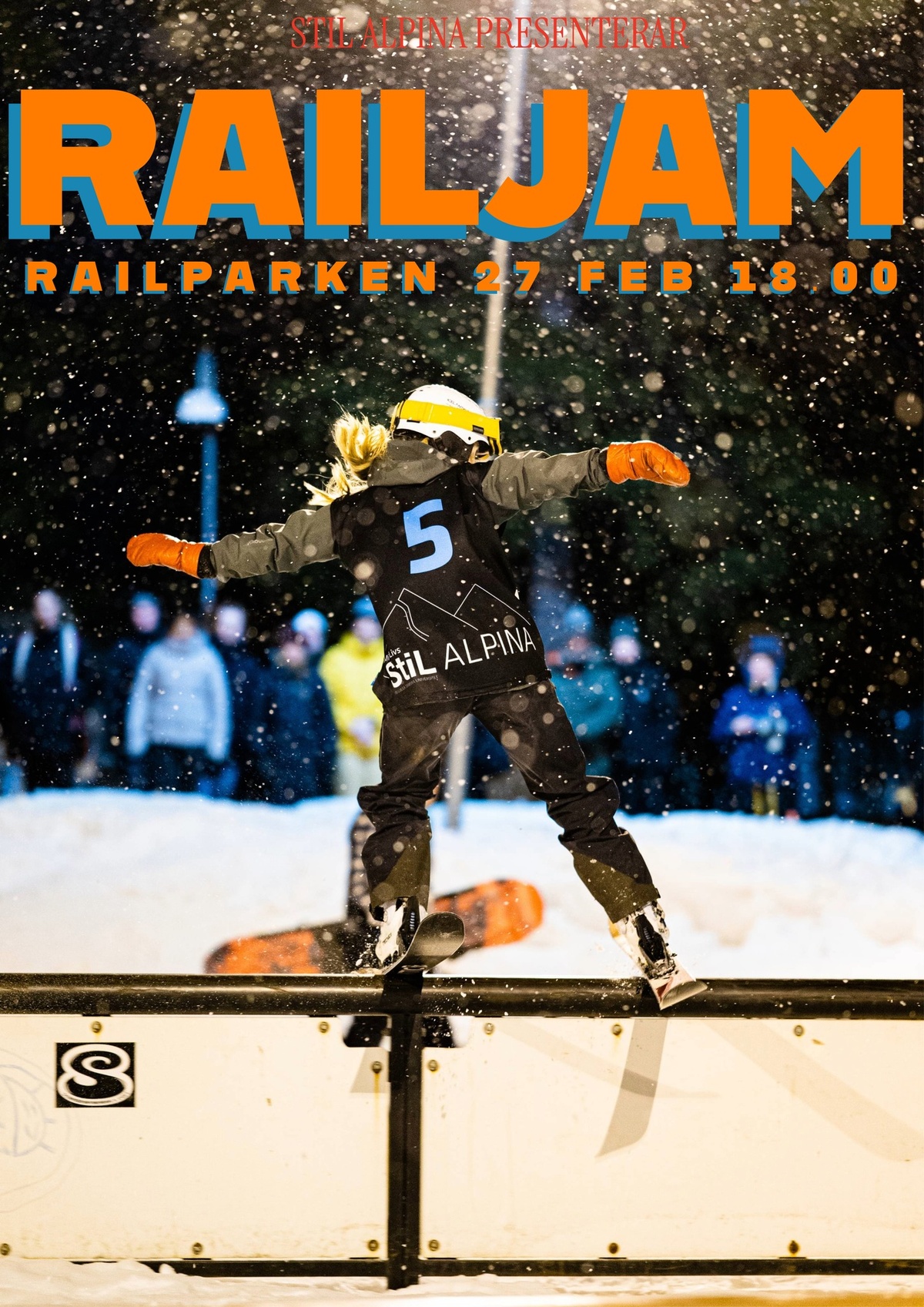 Fram med almanackan, den 27 februari körs årets upplaga av Railjam! Railjam är en railtävling i Railparken på Luleå Tekniska Universitet där alla är välkomna att vara med och tävla, oavsett åknivå. Om du inte vill tävla är du varmt välkommen som publik, häftiga tricks och härlig stämning utlovas! Klicka i att du “kommer” här på Facebook, för att inte missa en riktig toppenkväll!