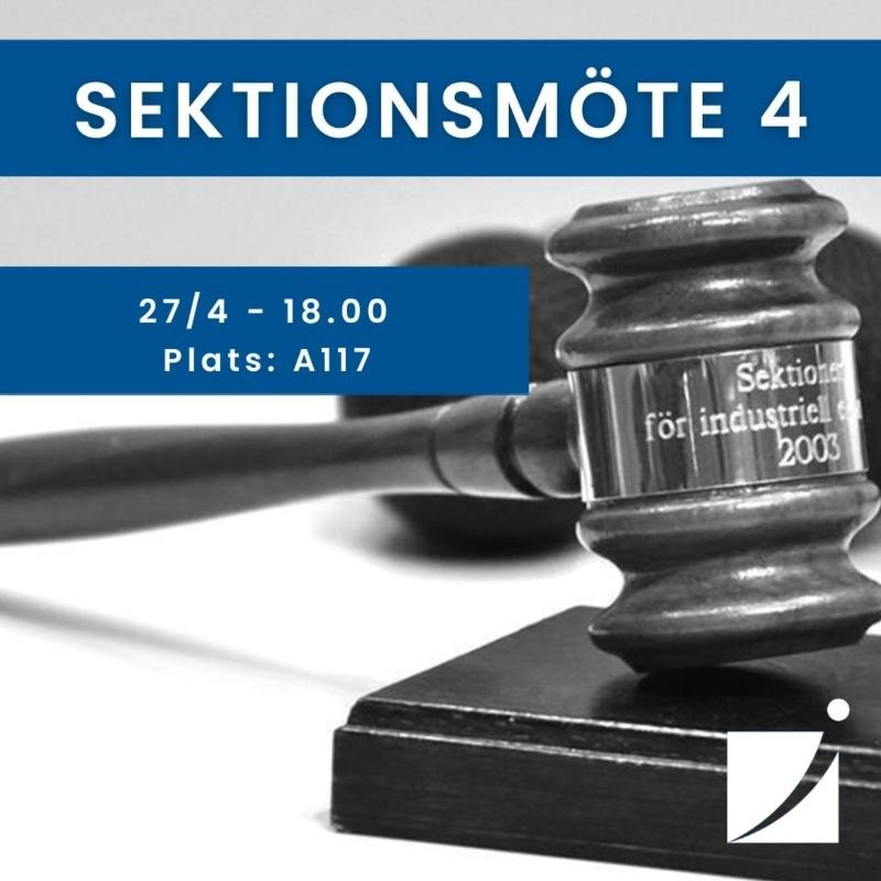 Den 27/4 är det dags för läsårets fjärde och förhoppningsvis sista sektionsmöte, SM4 i A117 (LKAB-salen).